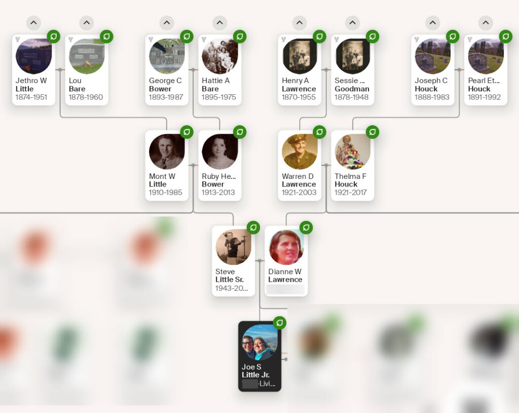 But here’s what made this interesting: it also noticed something genealogists call “pedigree collapse.” The surname Bare appears at positions 5, 9, and 11. Houck appears at positions 7 and 15. Steve’s Appalachian ancestors married within their community so frequently that the tree doesn’t branch—it braids.