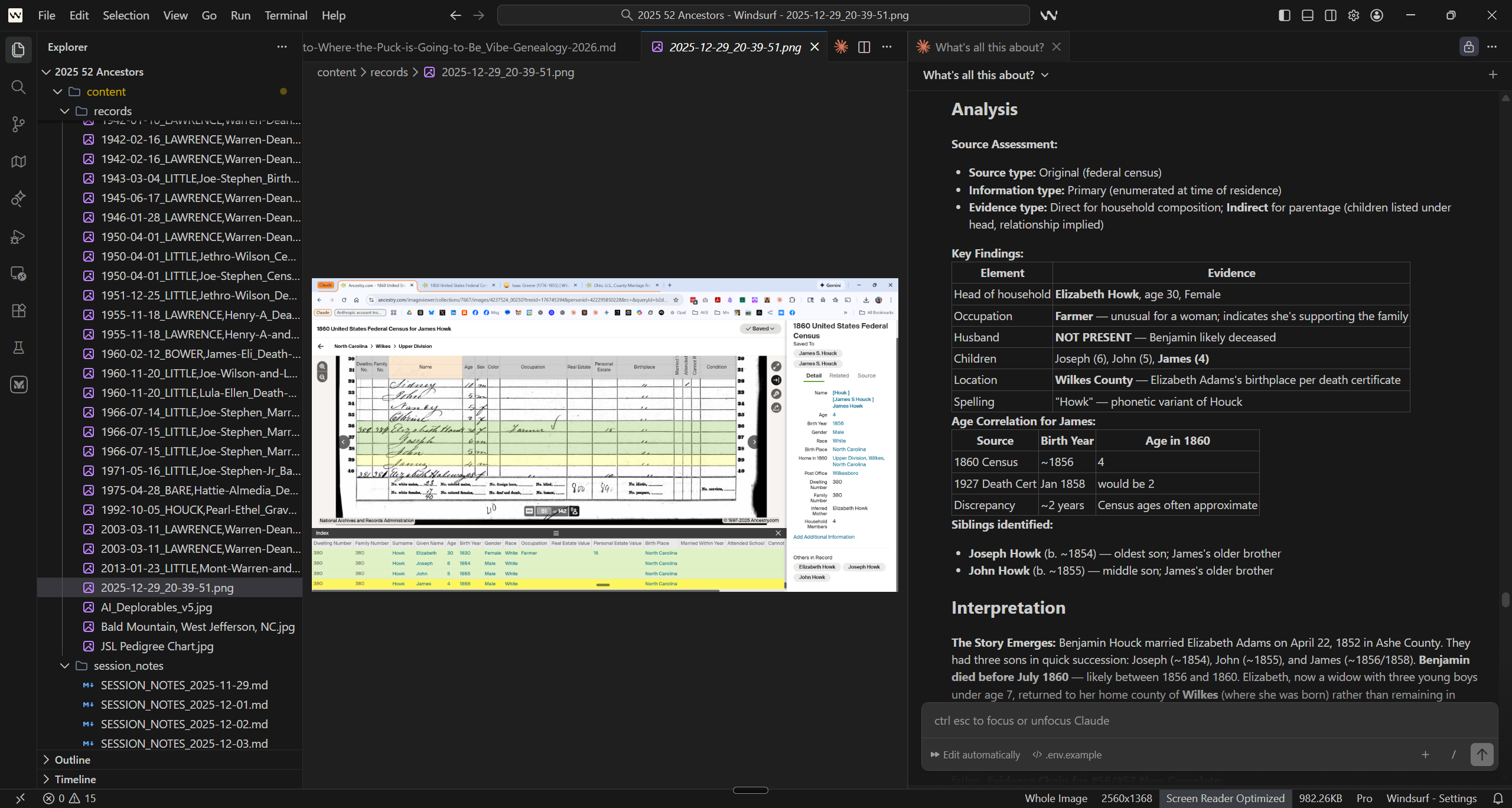 This post is part of the Vibe Genealogy series at AI Genealogy Insights, exploring the frontier of AI-assisted family history research. For the genealogical results of tonight’s session, see “The Night of Nine” at Ashe Ancestors. For background on the project, see “Vibe Genealogy: Here Comes the Sun.”